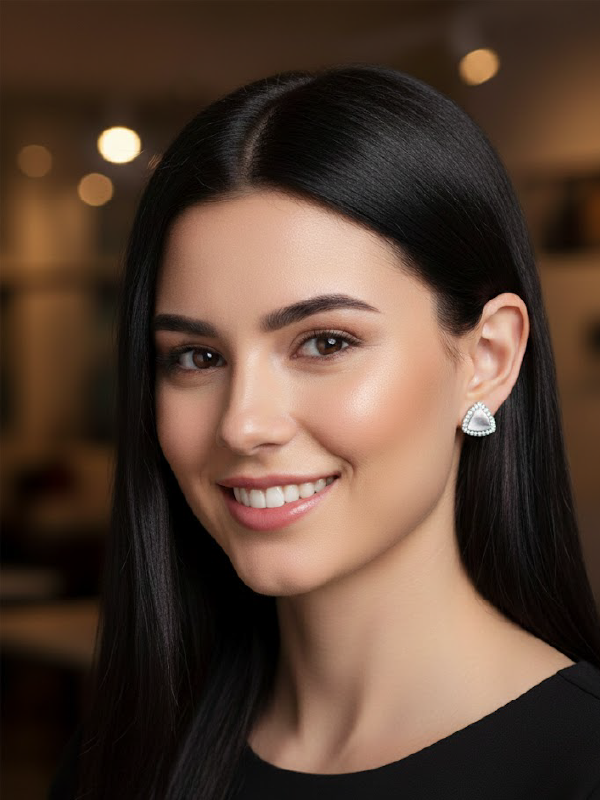 O formato triangular arredondado é uma escolha estratégica de design: ele oferece a modernidade das linhas geométricas sem a rigidez das pontas acentuadas, resultando em uma peça delicada que emoldura o rosto com suavidade. Seja para um evento formal ou para adicionar um toque de brilho ao traje de trabalho, o Brinco Maria é a definição de uma joia versátil que nunca sai de moda.