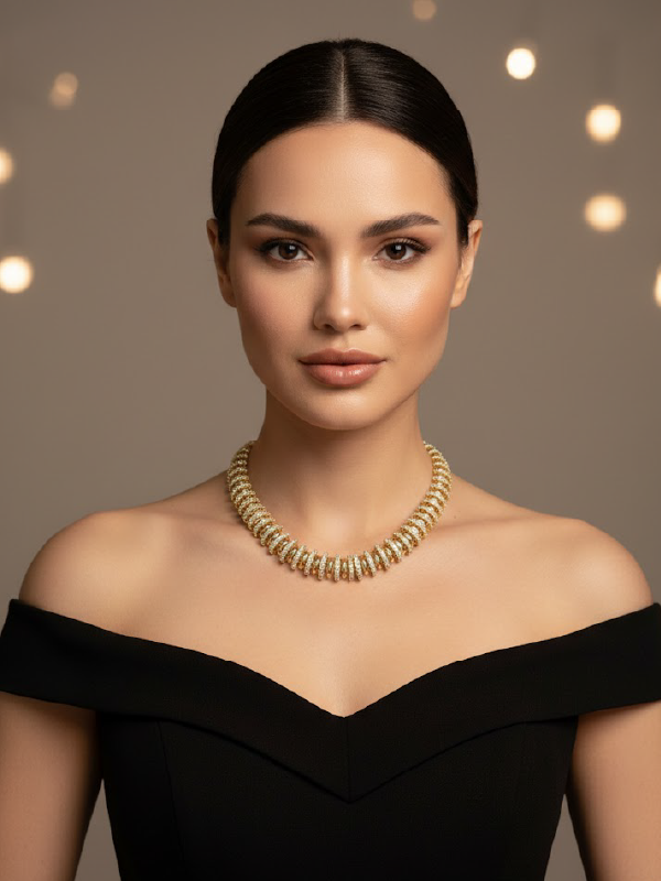 A peça possui uma articulação interna que permite um ajuste confortável ao redor do pescoço, garantindo que o colar mantenha sua forma estruturada sem perder a fluidez. O fecho é do tipo joalheria, integrado ao design para um acabamento limpo e extremamente seguro. É a joia ideal para eventos de gala, celebrações exclusivas ou para transformar um visual minimalista de alfaiataria em uma declaração de estilo absoluta.